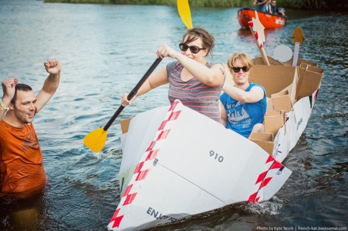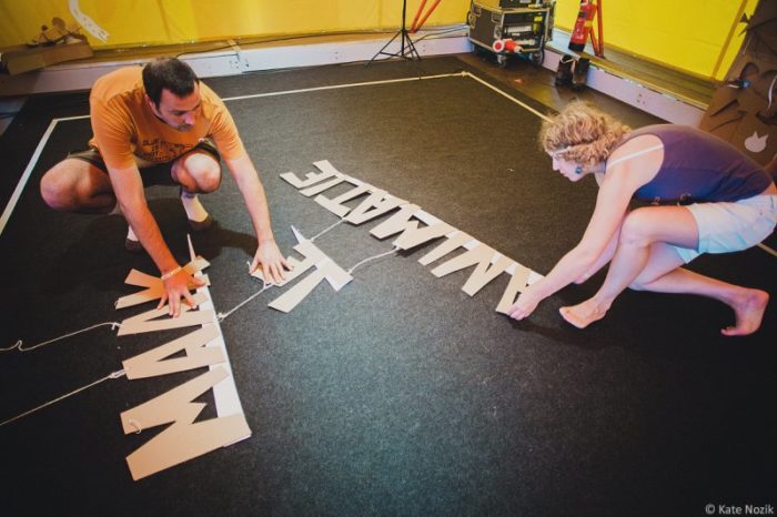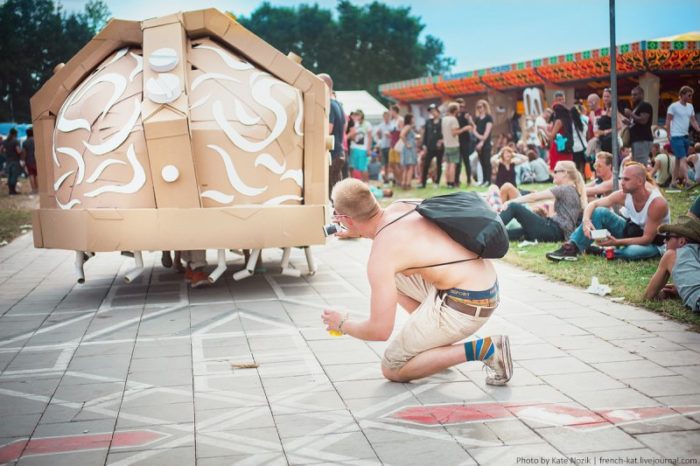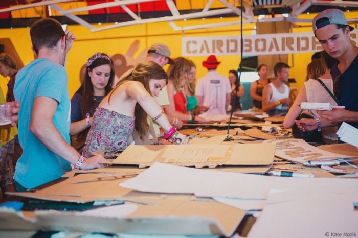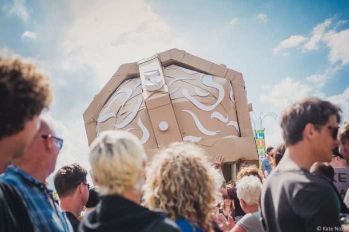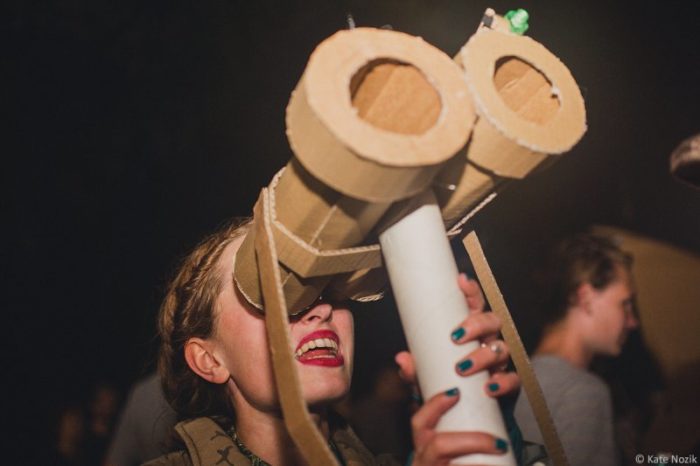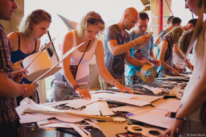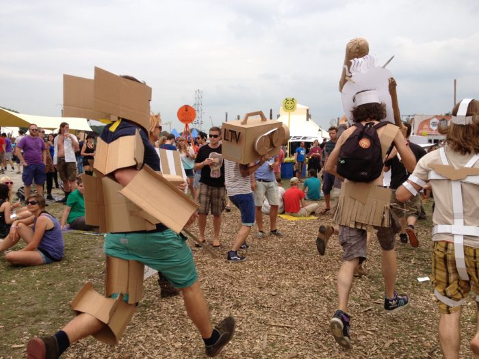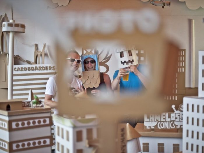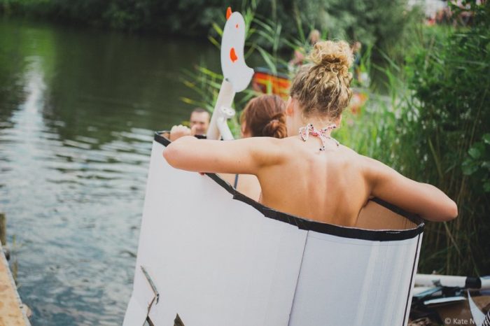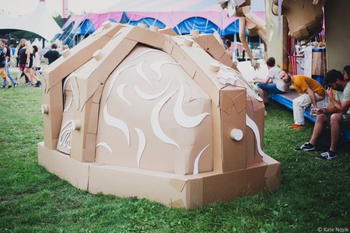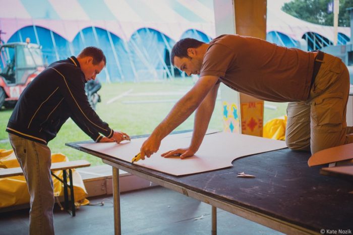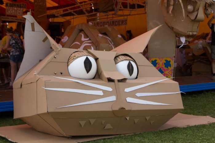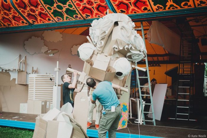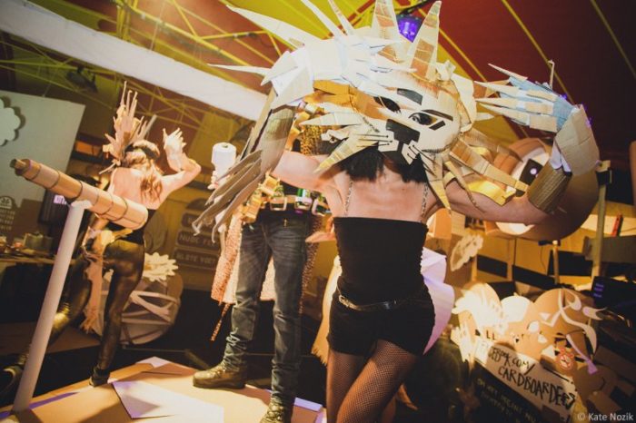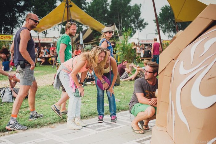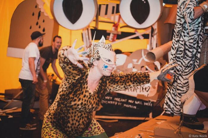 We came to the Lowlands festival with 22 hyped out Cardboarders from the Netherlands and Russia! Four days later 60.000 Lowlanders poured in to the terrain and just took over our venue (an old bumperstage). Crafting and tinkering people were everywhere! If you like to read something about the ambience: a great piece of (dutch) writing on 3voor12. Saturday was Cardboard Robotbuilding Day! LTV (captain video) made us a video of the Robot Run. On sunday we made some cardboard boats and tried the out: live on national radio! And then there was the parties at night, screening the weirdest animations from the KLIK! animation Festival!