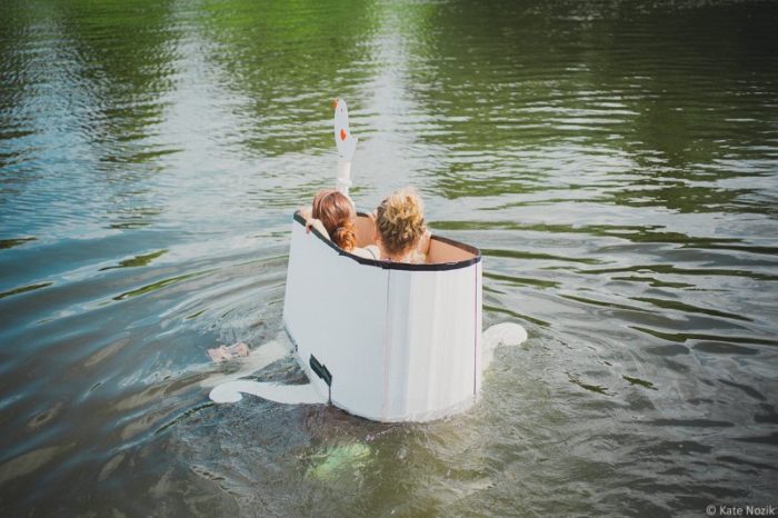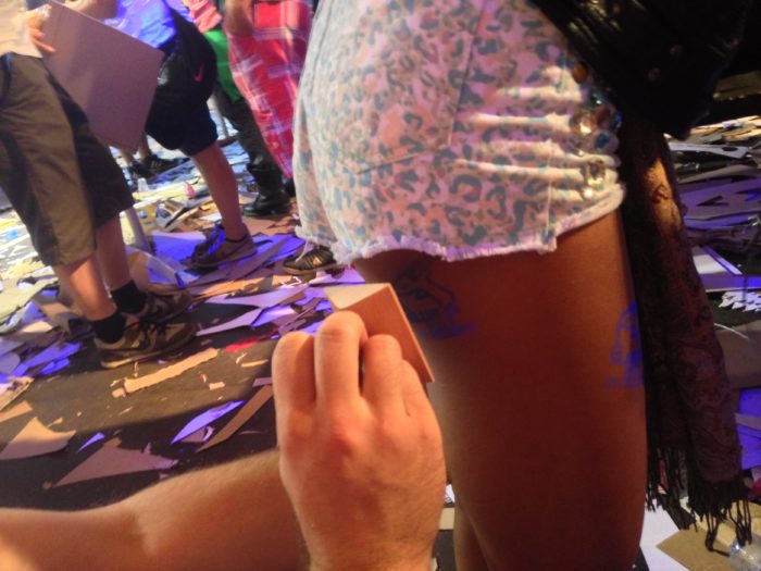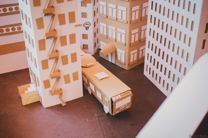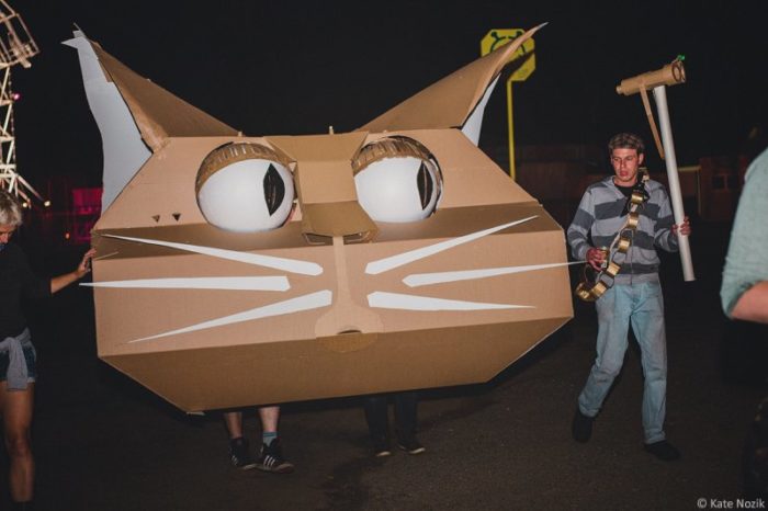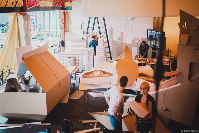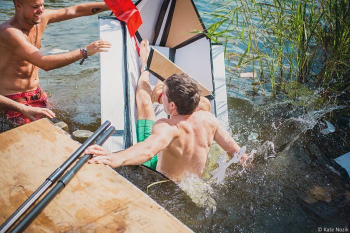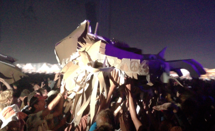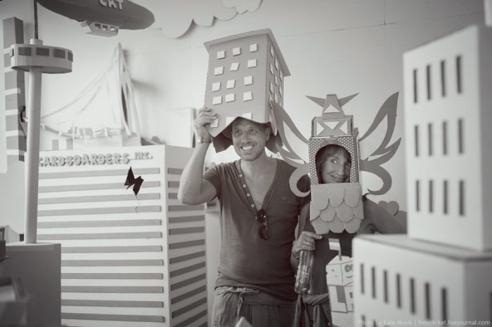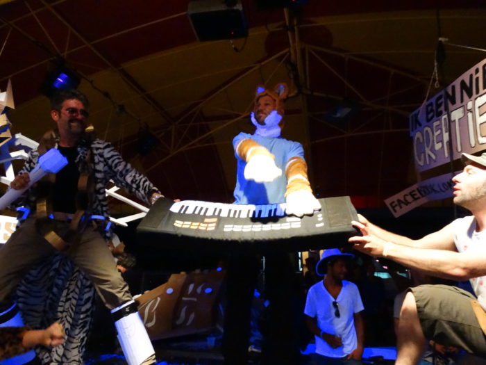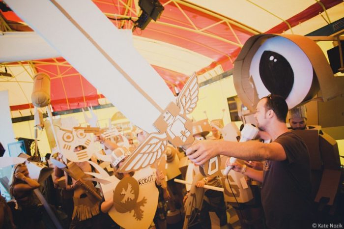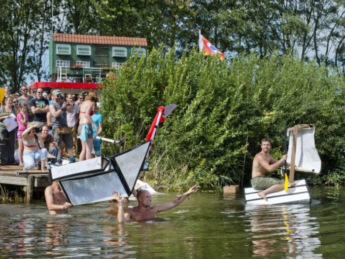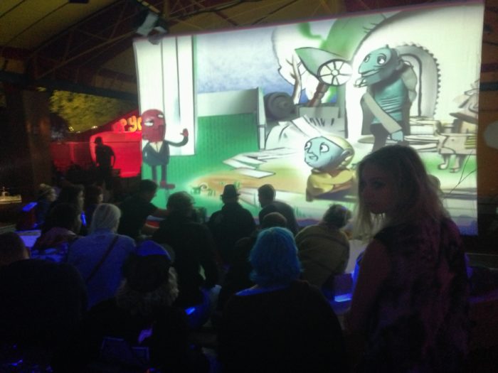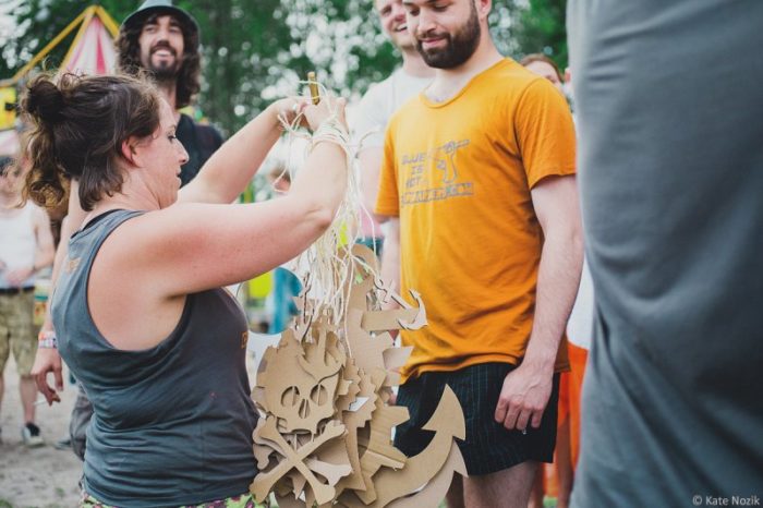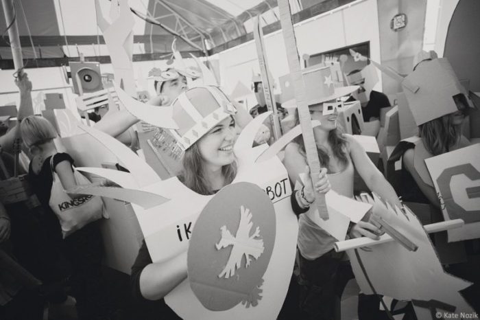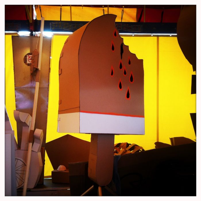 We came to the Lowlands festival with 22 hyped out Cardboarders from the Netherlands and Russia! Four days later 60.000 Lowlanders poured in to the terrain and just took over our venue (an old bumperstage). Crafting and tinkering people were everywhere! If you like to read something about the ambience: a great piece of (dutch) writing on 3voor12. Saturday was Cardboard Robotbuilding Day! LTV (captain video) made us a video of the Robot Run. On sunday we made some cardboard boats and tried the out: live on national radio! And then there was the parties at night, screening the weirdest animations from the KLIK! animation Festival!
