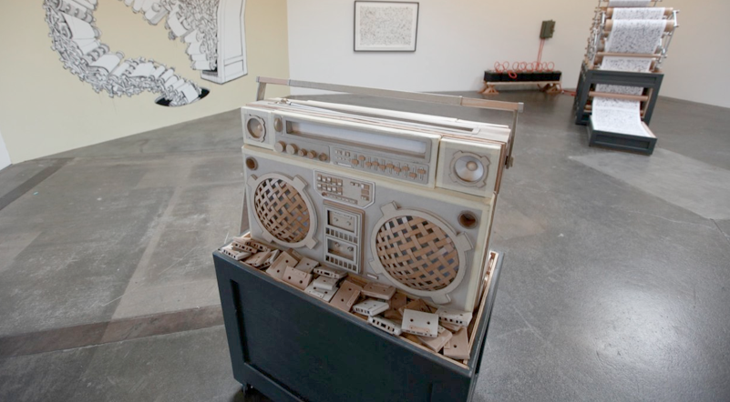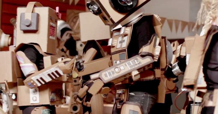 It looks fast, forceful and playful even though you feel he probably works his fingers to the bone to make these things! After a while every cardboardista makes a robot. I think it’s because cardboard is box shaped most of the times, and robots are too. Kiel Johnson: “There’s just something about seeing yourself and a machine combined to a robot”. The robot project is a collab between Kiel Johnson, Arthur Mor, Roger LA, and Cypress College Art.