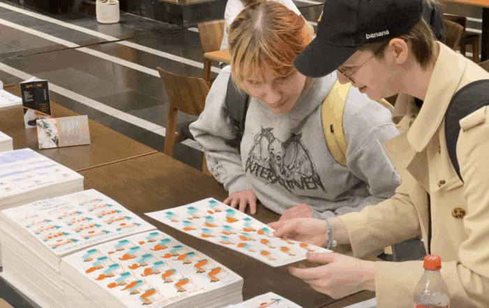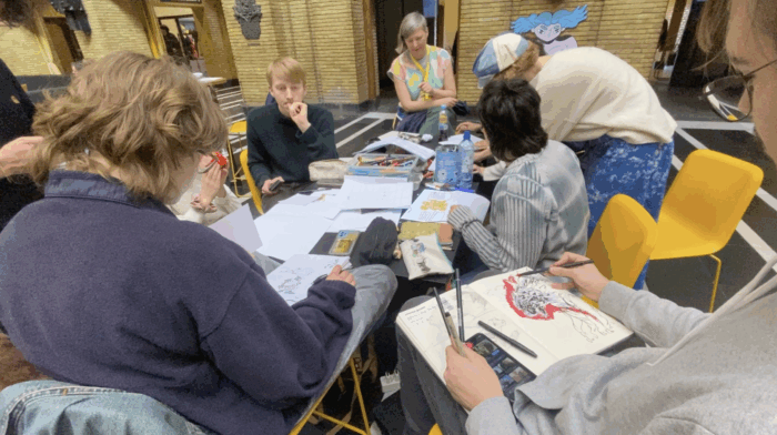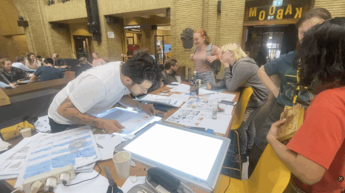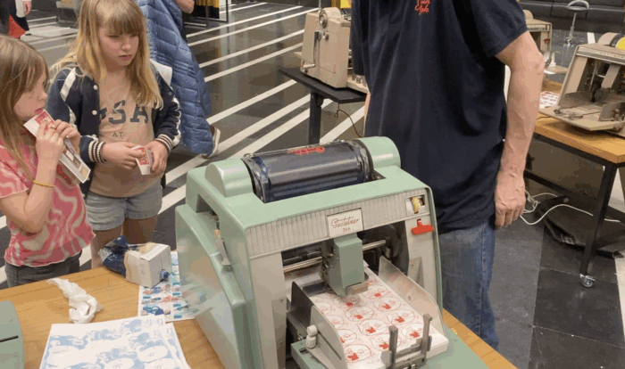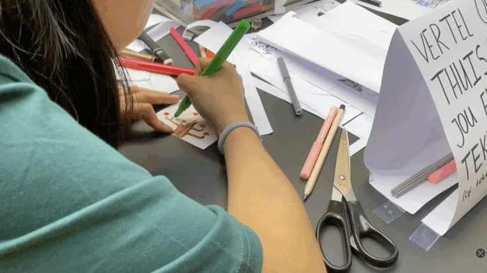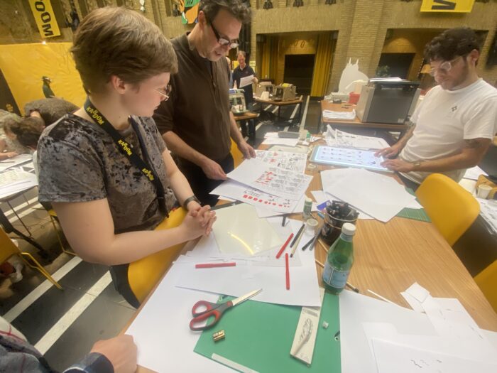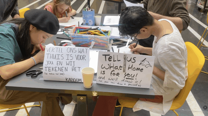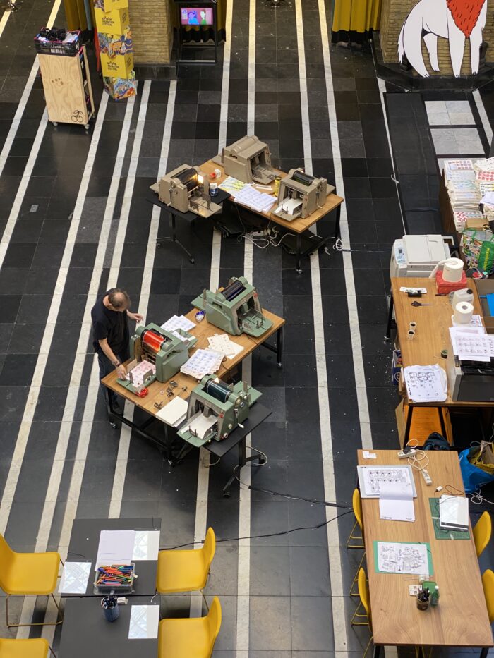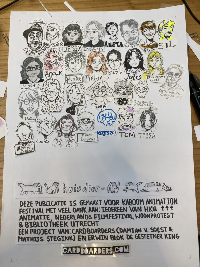 For the Kaboom! Animation festival, we created a live printed, collaborative magazine that is also an animation! Co-created on site with hand-stenciled pages (on vintage mineographs). Over the festival days, the theme “Being at home” was explored through collaborative illustration and animation (by 20 talented HKU students). Using interviews between audience and creators. This was a collaboration of Mathijs Stegink: artistic lead, Erwin Blok: the Gestetner King, Damian van Soest: the Lay Out and Illustration King